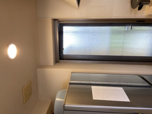 取付完了)オータムブラウン色が無かったのでホワイトの枠となりました。折れ戸です。
